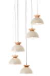 Die Kombination aus den glatten, abgerundeten Schirmen und den natürlichen Holzakzenten verleiht der Pendelleuchte einen skandinavischen Touch, der sowohl modern als auch gemütlich wirkt. Durch die Verwendung von Naturmaterialien entsteht ein angenehmes, einladendes Ambiente, das perfekt für Wohn-, Ess- oder Schlafzimmer geeignet ist.