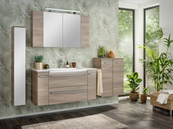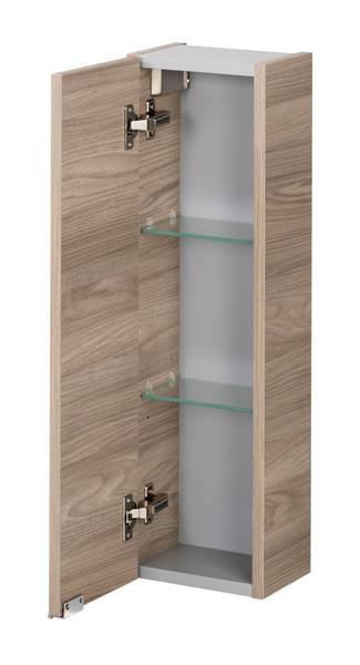 Das Programm LUXOR von FACKELMANN ist hängend konzipiert und wird für eine bequeme Installation vormontiert geliefert. Der Korpus ist stets in Steinesche-Dekor gehalten, einer hellen Holznachbildung, die ein natürliches Ambiente im Bad garantiert. Korpus und Front sind aus feuchtigkeitsresistenten Materialien gefertigt, stabil und pflegeleicht. Um ausreichend Stauraum sicher zu stellen, hält das LUXOR-Sortiment auch einen tiefenreduzierten Hängeschrank bereit. Dieser kann sowohl einzeln, als auch als Ergänzung zum Spiegelschrank (Art.nr. 79891) montiert werden.