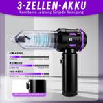 【3 SAUGSTUFEN & LED-LICHT】Dieser Handstaubsauger kabellos bietet 3 Saugstufen von leise bis Turbo, bequem per Taste umschaltbar (Start auf Stufe 1, zyklisches Umschalten). Das integrierte LED-Licht macht dunkle Stellen unter Sitzen, Schränken oder Tischen sichtbar – perfekt für präzises Reinigen im Auto, Haushalt oder Büro