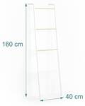 Mit der Handtuchleiter kannst Du Deine Hand- und Badetücher platzsparend trocknen. Platziere die 4-sprossige Wäscheleiter einfach an einer Wand Deiner Wahl ganz ohne lästiges Bohren. Der Badetuchhalter ist schnell aufgebaut und flexibel einsetzbar. Lege Duschtücher oder Kleidungsstücke auf dem Leiterregal ab oder nutze es lediglich als Dekoleiter. Mit seinem modernen Design ist der Standhandtuchhalter überall ein echter Blickfang.