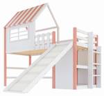 Dieses Hochbett von Merax verwandelt das Kinderzimmer in eine Spiel- und Traumwelt. Das Dachhaus-Design mit fröhlichen Farben erinnert an eine Eisdiele und bringt Leuchten in Kinderaugen – ein Geschenk, das begeistert.