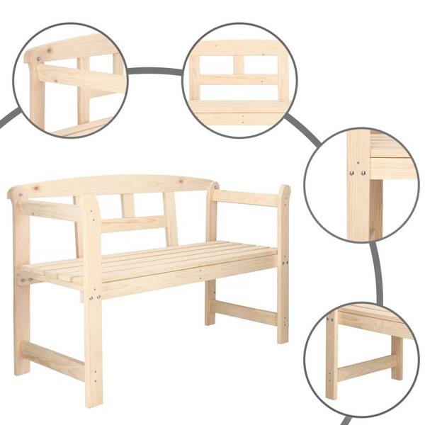 HINGUCKER: Die Holzbank hat schön designte Arm- und Rückenlehnen. Die Armlehnen sind ergonomisch abgerundet, um Ihren Sitzkomfort zu erhöhen
