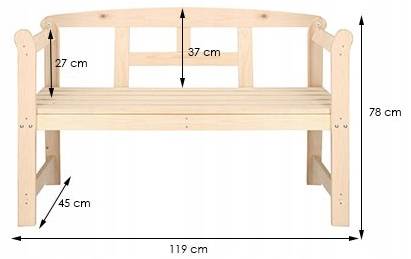 PARAMETER: bequeme Holzbank aus Massivholz mit Armlehnen, Maße: 119x45x78 cm, Holz nicht lackiert oder imprägniert, Stil: Landhaus
