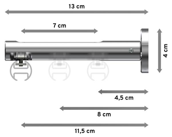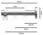 - Lieferumfang: 2 x Endstücke "Zylinder / Bicolor" Chrom/Schwarz, 24 x Faltengleiter mit Faltenlegehaken, 2 x Innenlaufprofil 120 cm Chrom, 1 x Innenlaufverbinder, 3 x Träger 1-3-läufig Langloch Chrom inkl. Befestigungsmaterial
