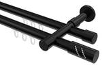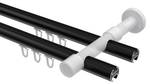 - Lieferumfang: 2 x Endstücke "Glitzerzylinder" Schwarz, 2 x Endstücke "Kappe" Schwarz, 48 x Faltengleiter mit Faltenlegehaken, 4 x Innenlaufprofile 120 cm Schwarz, 2 x Innenlaufverbinder, 3 x Träger 2-läufig Schwarz inkl. Befestigungsmaterial