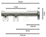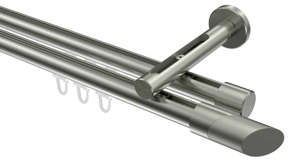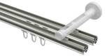 - Lieferumfang: 2 x Endstücke "Kappe" Edelstahl-Optik, 2 x Endstücke "Schräge / Bicolor" Edelstahl-Optik/Satin-Silber, 48 x Faltengleiter mit Faltenlegehaken, 4 x Innenlaufprofil 120 cm Edelstahl-Optik, 2 x Innenlaufverbinder, 3 x Träger 1-3-läufig Langloch Edelstahl-Optik inkl. Befestigungsmaterial
