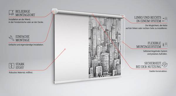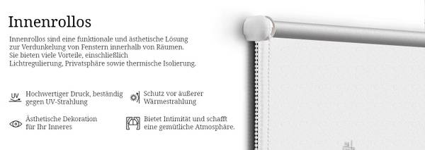 - Hinweis zur Maße: Die Gesamtbreite der Jalousie ist die Breite des Stoffes + 5 cm (1 cm Rohr + 4 cm Montagesystem)