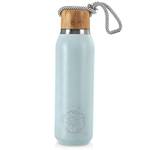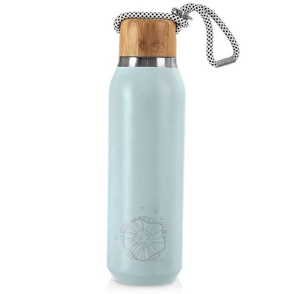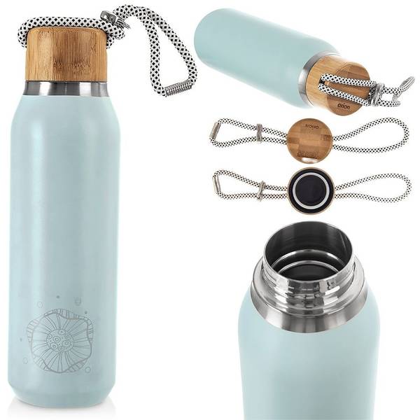 - AUS EDELSTAHL - Innen und außen aus hochwertigem Edelstahl gefertigt. Außen blau pulverbeschichtet mit einer zarten Grafik. Die Außenfläche ist rutschfest. Der Korken besteht außen aus Bambusholz und innen aus hochwertigem Kunststoff mit Dichtung.