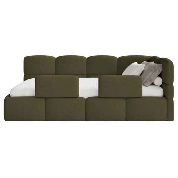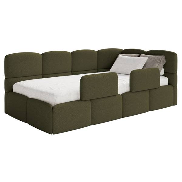 Doch Cloudy punktet nicht nur mit durchdachten Funktionen, sondern überzeugt auch optisch auf ganzer Linie: Das weich gepolsterte Eck-Kopfteil mit seinen stilvollen vertikalen und horizontalen Ziernähten sieht nicht nur besonders ansprechend aus, sondern lädt Ihr Kind auch tagsüber zum Lesen, Spielen und Entspannen ein.