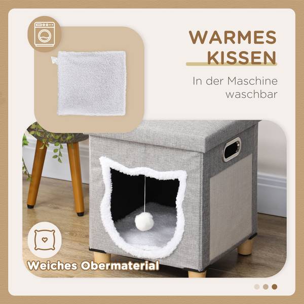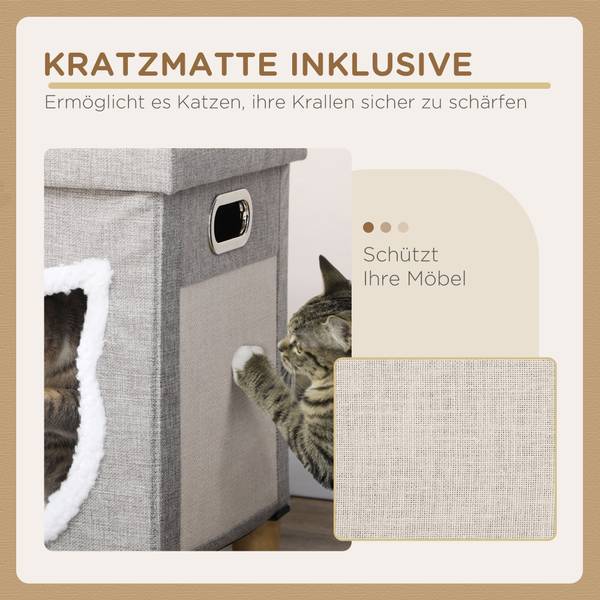 - Inklusive abnehmbarem Kissen, Kratzmatte und Spielball