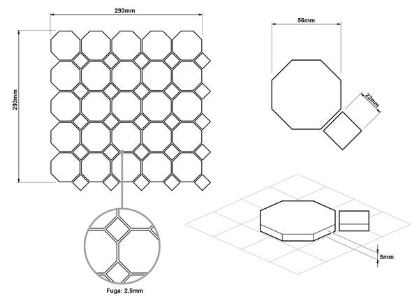 Ideal für die Wandmontage im Innenbereich des Hauses, aber auch hervorragend für die Erstellung von Streifen und/oder dekorativen Einsätzen geeignet, da es sich dank der Maschenstruktur leicht schneiden lässt. Es passt sich allen Oberflächen an, sowohl geraden als auch welligen, ideal auch für Böden. Das Mosaik wird auf einem Zellulosenetz oder einem Öko-Kunststoffnetz geliefert.
