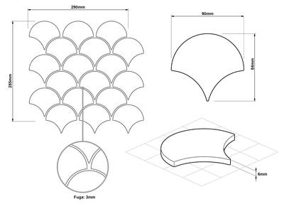 Ideal für die Wandmontage im Innenbereich des Hauses, aber auch hervorragend für die Erstellung von Streifen und/oder dekorativen Einsätzen geeignet, da es sich dank der Maschenstruktur leicht schneiden lässt. Es passt sich allen Oberflächen an, sowohl geraden als auch welligen, ideal auch für Böden. Das Mosaik wird auf einem Zellulosenetz oder einem Öko-Kunststoffnetz geliefert.