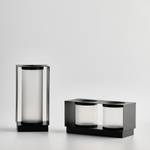 Ein moderner Kerzenhalter aus Metall in elegantem Schwarz mit dezentem Glaseinsatz. Sein minimalistisches Design und die Kombination der Materialien schaffen eine stilvolle Dekoration, die sich perfekt für Innenräume mit industriellem oder modernem Flair eignet. Er ist ideal für klassische Kerzen und verleiht jedem Raum einen stimmungsvollen Glanz.