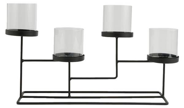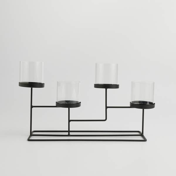Der Kronleuchter aus Metall mit Glas in Schwarz ist ein elegantes und modernes Accessoire, das jedem Interieur Charme verleihen wird. Durch sein minimalistisches Design passt er perfekt in eine Vielzahl von Umgebungen, während die schwarze Farbgebung eine Atmosphäre von Eleganz und Geheimnis schafft. Die Metallkonstruktion garantiert Langlebigkeit, während die Glasakzente den Effekt der Kerzenflamme betonen und eine gemütliche Atmosphäre schaffen. Perfekt für romantische Abendessen, Zusammenkünfte mit Freunden oder als Dekoration für besondere Anlässe.