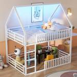Dieses hausförmige Etagenbett mit stabilem Stahlrahmen und klassischem Himmeldach schafft für Kinder eine gemütliche und spielerische Schlafzimmerumgebung. Unter dem Bett verwandelt sich der frei werdende Raum in einen aufregenden Spielplatz. Zusätzlich sorgt eine integrierte LED-Lichtleiste mit 7 Farben für eine stimmungsvolle Beleuchtung beim Spielen oder Lernen. Mit einer belastbaren Tragfähigkeit von 150 kg, einer Matratzenfläche von 140x200 cm und einfacher Montage ist dieses langlebige Hochbett die gut Wahl für Ihr Kind, um sicher und mit viel Spaß zu schlafen und zu spielen.