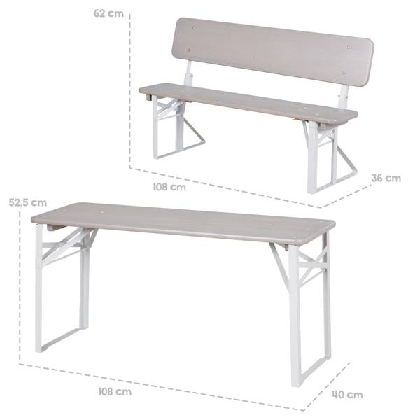 - Lieferumfang: 2x Bänke, 1x Tisch