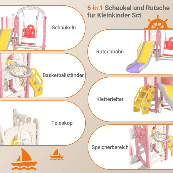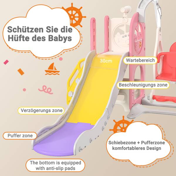 2. Tolle Spielmöglichkeiten für Kinder: Die Spielmöglichkeiten umfassen Rutschen, Schaukeln, leicht zu erklimmende Treppen, Teleskope, Basketballkörbe und Ablageflächen für endlosen Spielspaß.