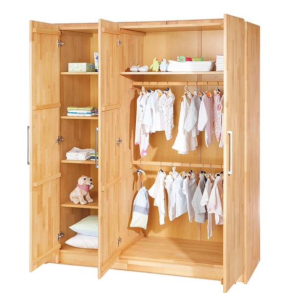 - 3-teiliges Set - die ideale Erstausstattung für das natürliche Kinderzimmer: bestehend aus Kinderbett inklusive Umbauseiten, breiter Wickelkommode und großem Kleiderschrank aus massiver Buche, geölt mit Hartöl auf Leinsamenöl-Basis; die Holzstruktur ist sehr gut sichtbar