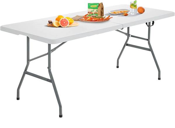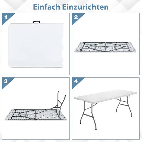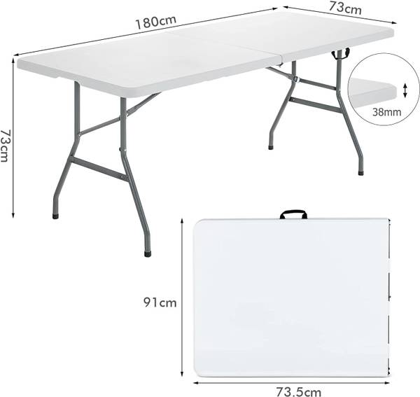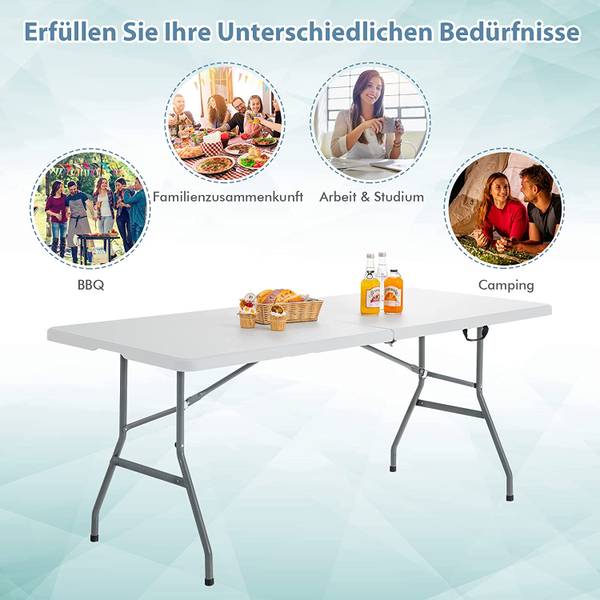 - 【Vielseitige Verwendung】Dieser Klapptisch ist eine großartige Kombination aus Nützlichkeit und modernem Design, was ihn ideal für den Innen- und Außenbereich macht. Dieser multifunktionale Tisch kann als Esstisch, Hochzeitstisch, Computertisch oder Arbeitstisch verwendet werden, um Ihren unterschiedlichen Bedürfnissen gerecht zu werden.