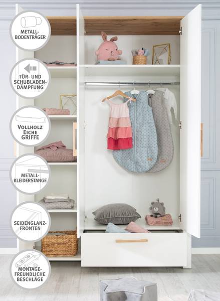 - Lieferumfang: 1x Kleiderschrank, 1x Kleiderstange, 5x Einlegeböden