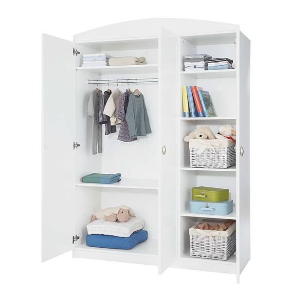 - Der große Kleiderschrank 'Laura' besticht durch sein sanft abgerundetes, freundliches Design, mit seinen 3 Türen bietet er jede Menge Platz für alles was verstaut werden muss