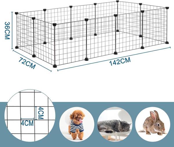 - Geeignet für kleine Haustiere: Der Drahtabstand beträgt 4,0 cm, was geeignet für Kaninchen, Zwergkaninchen, Kätzchen oder Welpen ist. Für Haustiere mit gutem Sprungvermögen wird eine Höhe über 70 cm empfohlen.