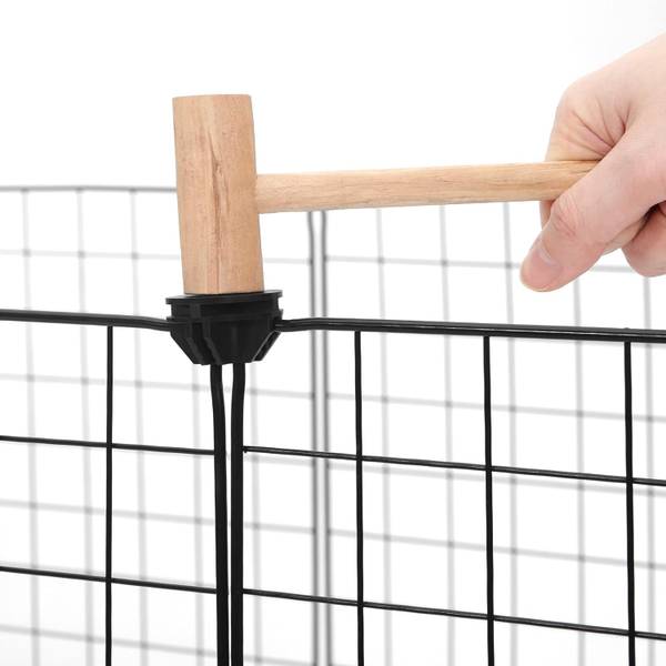 Hammer: Nachdem Sie die Platten mit einem ABS-Verbinder befestigt haben, befestigen Sie den Stecker mit dem mitgelieferten kleinen Holzhammer wieder, um die Verbindung zwischen den Drahtgitterstücken und Kunststoffplatten zu verstärken.