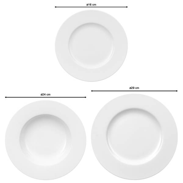 - Lieferumfang: 6x Brotteller, 6x Speiseteller, 6x Suppenteller