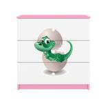 BABYDREAMS Kinderkommode mit Motiv Kleiner Dino in der Farbe Rosa – Praktische Lösung für das Kinderzimmer.