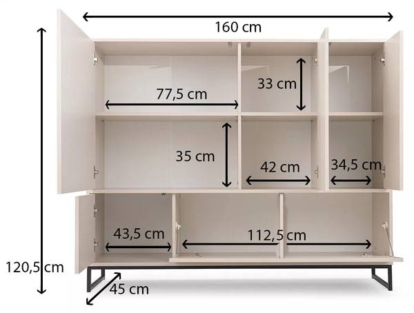 Die beigefarbene Kommode GENUA mit schwarzem Rahmen verbindet Stil und Funktionalität. Mit ihren 8 geräumigen Einlegeböden ist sie ideal für die Aufbewahrung von Kleidung, Dokumenten oder anderen Gegenständen. Hochwertige Scharniere und eine laminierte Möbelplatte sorgen für Langlebigkeit und Nutzungskomfort. Der schwarze hohe Rahmen verleiht der Kommode einen modernen Look, während die kunststoffgeschützten Kanten sie vor Beschädigungen schützen. Sie ist nicht nur praktisch, sondern auch eine elegante Ergänzung für jedes Interieur.