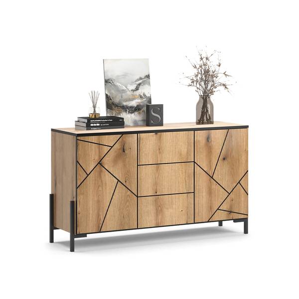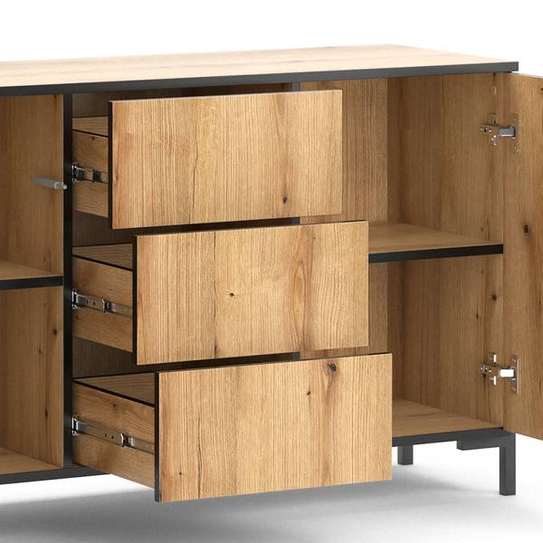 Mit seinem modernen Design fügt sich das Sideboard stilvoll in Ihr Zuhause ein. Ein echter Hingucker! Das Sideboard mit seinen 2 Türen, 4 Fächern und 3 Schubladen bietet viel Stauraum für Ihre Utensilien und sorgen für Ordnung. Die "Push-to-Open"-Funktion ermöglicht ein bequemes Öffnen der Türen und Schubladen ohne Griffe. Die pflegeleichte Oberfläche macht die Reinigung zum Kinderspiel und garantiert langanhaltende Freude an Ihrem Sideboard. Das Sideboard ist Bestandteil unserer Hatto-Möbelserie.