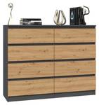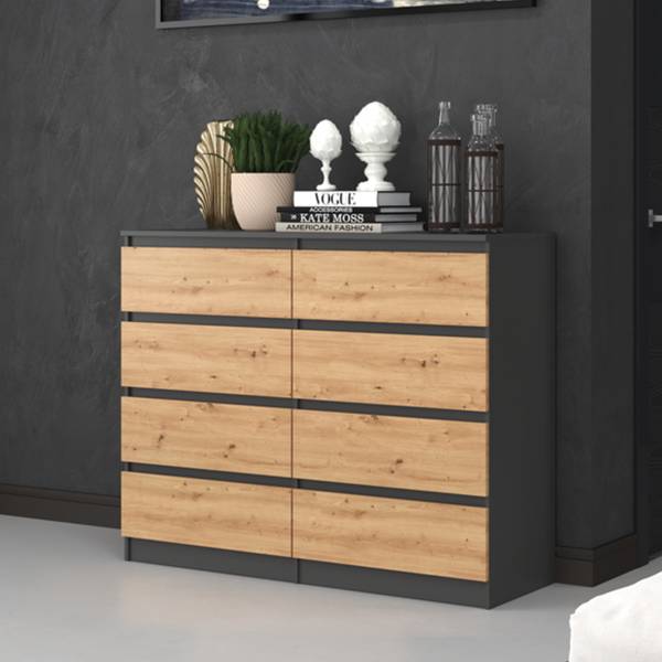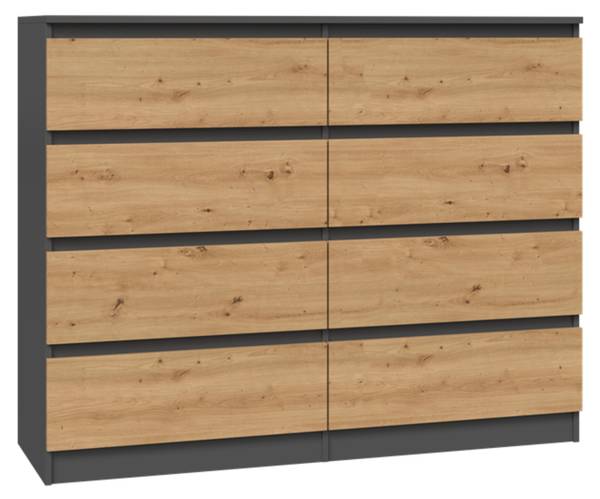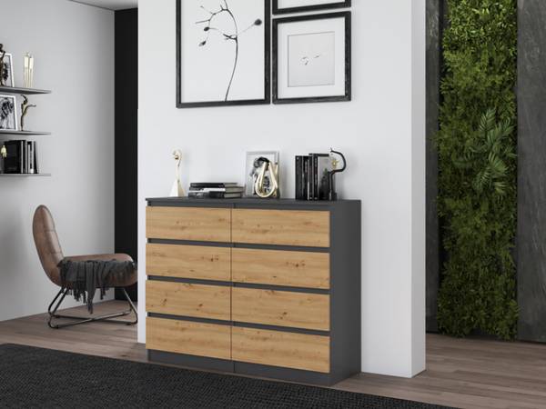 Das geradlinige Design, die kompakten Maße und die geräumigen Schubladen machen diese Kommode zu einer praktischen und zugleich ästhetischen Lösung. Der unschlagbare Preis lässt keine Wünsche offen, und die Vielseitigkeit des Möbelstücks zeigt sich in seiner Anpassungsfähigkeit: sei es in der Diele, im Flur, im Wohnzimmer, Esszimmer oder im Hobby-Keller – diese Kommode fügt sich überall harmonisch ein.