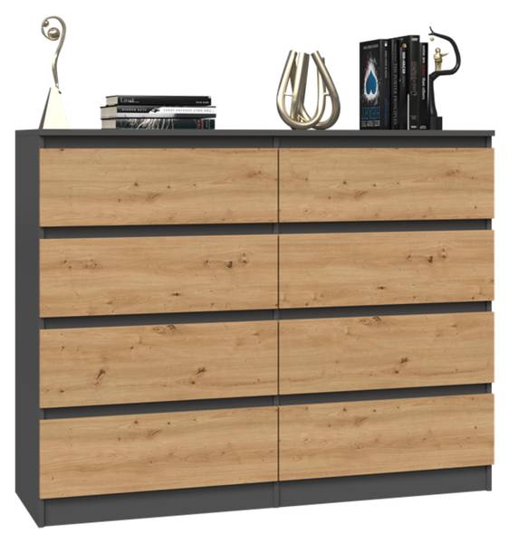 Mit mehreren schienengeführten Schubladen, ausgestattet mit einer Auszugssperre, bietet diese Kommode nicht nur einfache, sondern auch sichere Handhabung. Organisieren Sie im Handumdrehen Ihre Kleidung, Bücher, Papiere und andere nützliche Dinge – alles an einem Ort mit überraschend viel Stauraum.