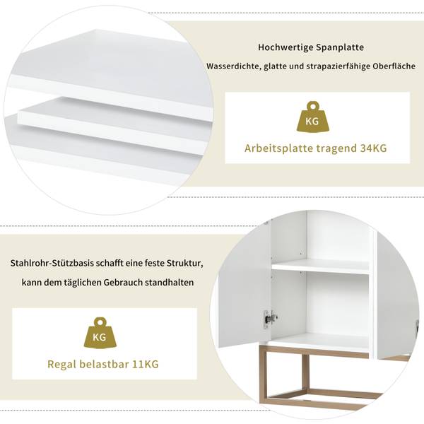 2.Es sind zwei verstellbare Regale eingebaut, und es gibt drei Höhen, die angepasst werden können, und Sie können es auch entfernen. Die Schranktür ist mit einem Rückprallvorrichtung ausgestattet, sodass Sie die Tür einfach und bequem mit nur leichtem Druck öffnen oder schließen können. Dieses dekorative Sideboard wird auch Ihre Möbel perfekt ergänzen.