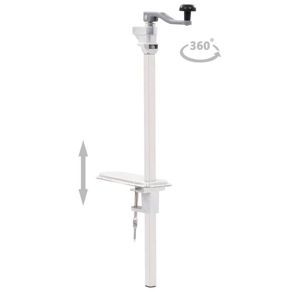 Der aus Aluminium und starkem Edelstahl gefertigte Dosenöffner ist äußerst stabil und langlebig und eignet sich sowohl für den privaten als auch für den professionellen Gebrauch, einschließlich in Hotels, Restaurants, Schulen, bei Veranstaltungen usw. Mit der mitgelieferten Befestigungsklammer lässt er sich einfach am Tisch oder an der Arbeitsplatte befestigen und hilft beim schnellen und einfachen Öffnen verschiedener Dosen mit einer Höhe von bis zu 55 cm. Der um 360 Grad drehbare Griff bietet maximale Flexibilität, um unterschiedlichen Anforderungen gerecht zu werden.