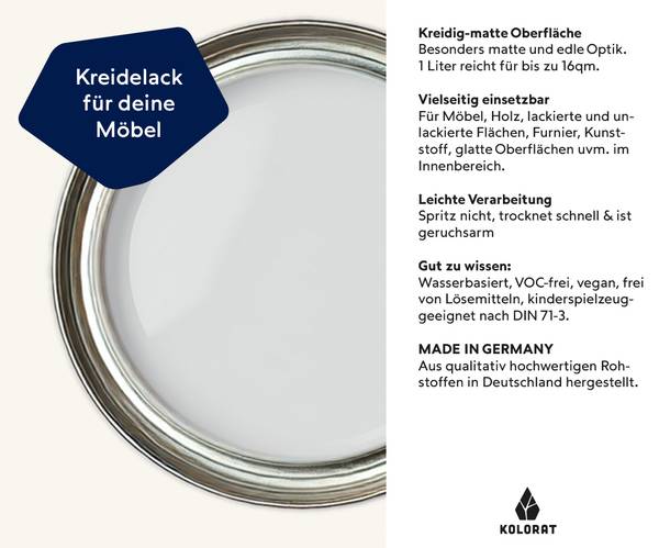 - Weitere Qualitätsmerkmale: Hochwertige Kreidefarbe für Möbel - Made in Germany