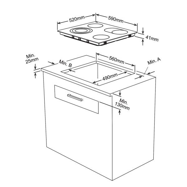 - Kochfeld: Glaskeramik