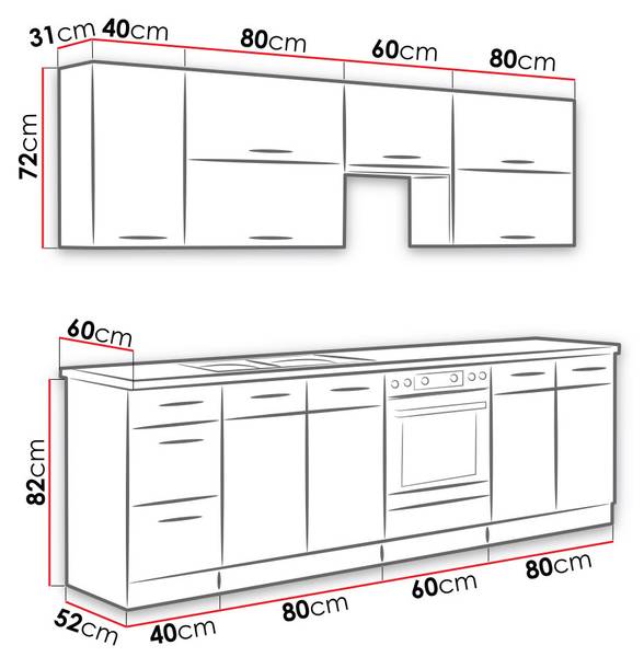 - Arbeitsplatte ist im Preis enthalten - Arbeitsplatte mit einer Länger von 260 cm (Tiefe mit Arbeitsplatte: 60 cm)