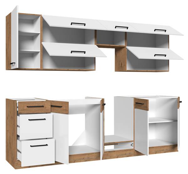 - Arbeitsplatte ist im Preis enthalten - Arbeitsplatte mit einer Länger von 260 cm (Tiefe mit Arbeitsplatte: 60 cm)