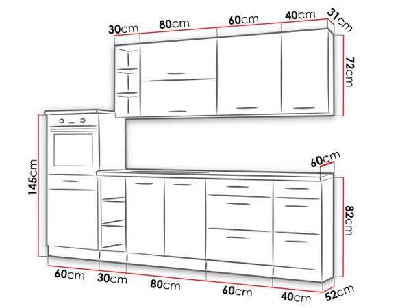 - die Küchenrückenwand, Küchengeräte und Dekorationselemente sind nicht im Preis enthalten