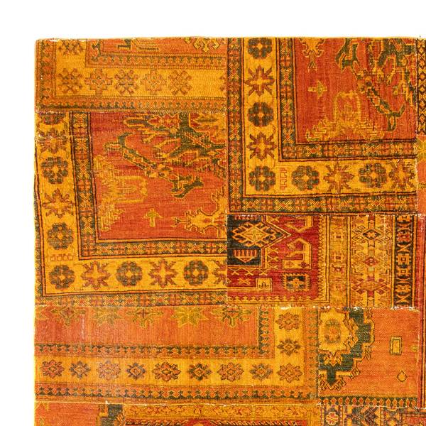 Patchwork- oder Vintage-Teppiche wurden Anfang des 21. Jahrhunderts in der Türkei erfunden. Diese Teppichart wird kunstvoll aus Teilstücken alter und bisweilen antiker Perserteppichen hergestellt. Hinter der Verarbeitung steckt ein aufwändiger Prozess, denn jedes besteht aus einzelnen Teppichteilen, welche vorher per Hand ausgewählt, zugeschnitten und vernäht werden. So kommt es zu einem stark variierenden Mix an Teppich-Designs. Spezielle Zick-Zack-Nähte und eine zusätzliche Rückseite verleihen dem Teppich Stabilität und Haltbarkeit. Vor der Verarbeitung werden die Teppiche selbstverständlich gründlich gereinigt. Farbige Vintage Teppiche werden farbneutralisiert und dann neu eingefärbt, wodurch sie ihren distinkten, modernen und zeitgemäßen Look erhalten. Jeder Patchwork-Teppich ist aufgrund des beschriebenen Verfahrens ein Unikat. Der englische Begriff „Vintage“ bedeutet so viel wie erlesen, klassisch oder alt.