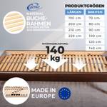 Der Lattenrost wird zerlegt geliefert und ist dank beiliegender Anleitung schnell und werkzeugfrei montiert. Perfekt für alle, die einfache Lösungen schätzen und dennoch auf Qualität Wert legen. Wichtig: Der Lattenrost muss auf beiden Längsseiten durch das Bettgestell unterstützt werden.