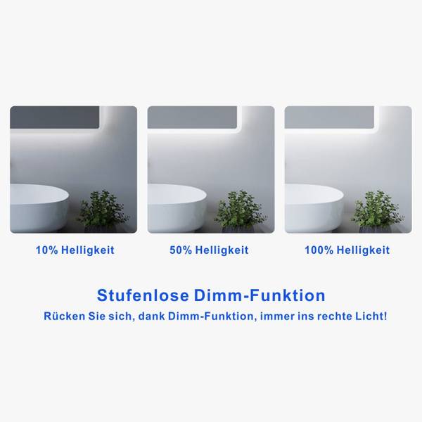 - 3 Lichtfarbe und Farbtemperatur einstellbar: Unser LED Badspiegel verfügt über 3 Lichtfarben, jede Lichtfarbe passt sich individuell Ihren Wünschen an und sorgt für eine helle oder warme Atmosphäre.