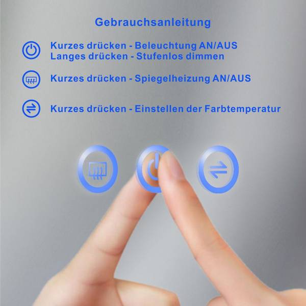 - Ohne Streifen und Vernebelung: Unsere Badspiegel mit eine Heizung können Sie separat mit einem Touch-Schalter steuern. Halten Sie klare Reflexion Bild jedes Mal ohne Abwischen der Badspiegel nach einem warmen Bad. Damit nicht unnötig Strom verschwendet wird, ist die Anti-Beschlag Funktion nur im mittleren Teil des Spiegels wirksam und kann nicht den gesamten Bereich des Spiegels abdecken, d.h nur der mittlere Teil des Spiegels ist beschlagfrei.