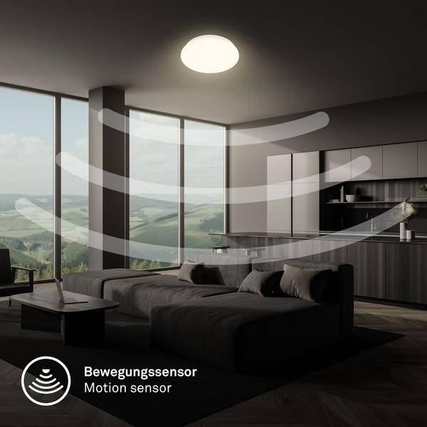 Diese Deckenleuchte mit Sensor kombiniert modernes Design mit praktischer Ausstattung. Sie erkennt zuverlässig Bewegungen und aktiviert das Licht automatisch - ideal für Durchgangsbereiche.