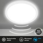 Intensive Lichtleistung Mit einer 18W LED-Platine ausgestattet, liefert diese Feuchtraumleuchte 2400 Lumen bei einer neutralen Farbtemperatur von 4000K, wodurch sie eine strahlend helle und effiziente Beleuchtung bietet. Subtiler Hintergrundbeleuchtungseffekt Die LED-Badleuchte erzeugt auf der Rückseite einen feinen Lichteffekt, der jedem Raum zusätzliche Tiefe verleiht und eine einladende Atmosphäre schafft. Automatischer Bewegungsmelder Dank des integrierten Bewegungsmelders, der Bewegungen aus bis zu 3 Metern Entfernung und in einem Winkel von 120° erkennt, sorgt die Leuchte für automatisches Licht bei Bewegung. Spritzwasserschutz nach IP44 Diese LED-Lampe ist IP44-zertifiziert, was sie gegen Spritzwasser schützt und ideal für feuchte Umgebungen wie Badezimmer macht. Schlankes, modernes Design Mit einer Höhe von nur 30mm und einem Durchmesser von 290mm integriert sich diese elegante weiße LED-Küchenlampe unauffällig in jede Decke.