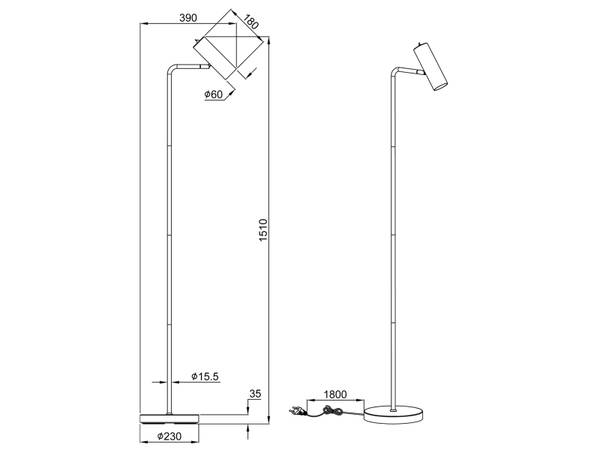 - Lieferumfang: 1x Stehleuchte, 1x GU10 LED Leuchtmittel mit 3 Stufen Dimmer