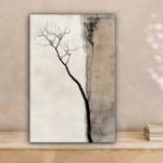 Ein kahler, schwarzer Ast steht im Mittelpunkt, vor einem verwitterten Hintergrund mit Braun- und Beigetönen.6x