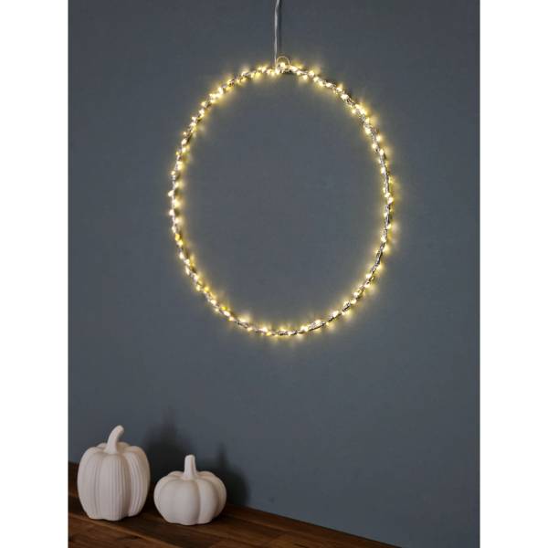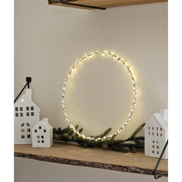 Nutzen Sie den LED-Kranz nicht nur als festliches Highlight zur Weihnachtszeit, sondern als ganzjährigen Blickfang und stilvolle Dekoration. Die Kombination aus silberfarbenem Ring und transparentem Kabel passt dezent zu jedem Einrichtungsstil.