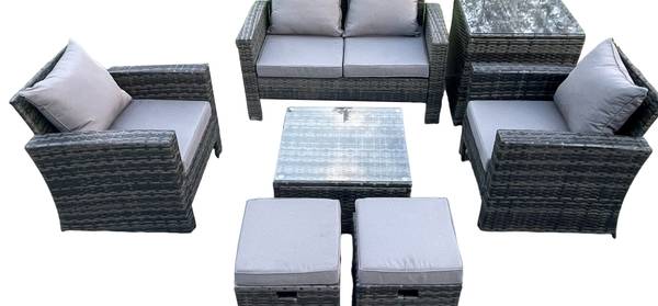 - Lieferumfang: 1*Doppelsofa,2*Stuhl,1*Couchtisch,1*Beistelltisch,2*Kleiner Hocker